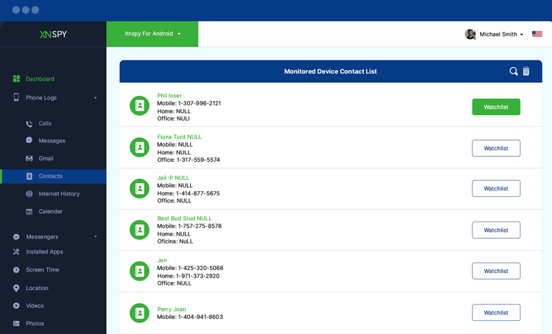 Gelen ve giden aramaları kaydedin, izleme listesindeki kişiler hedef cep telefonunuzu aradığında e-posta uyarıları alın ve XNSPY'nin web tabanlı kontrol panelinden iletişimlerini dinleyin.