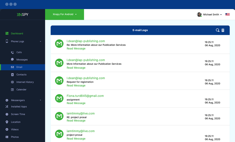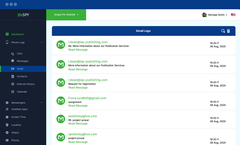 Tüm gelen ve giden e-postaları burada tarayabilirsiniz. XNSPY, e-posta adreslerini ve kelimeleri izleme listesi yapmanızı sağlar. Gmail aracılığıyla herhangi bir izleme listesi etkinliği gerçekleştiğinde sizi bilgilendirmek için uyarılar gönderir.