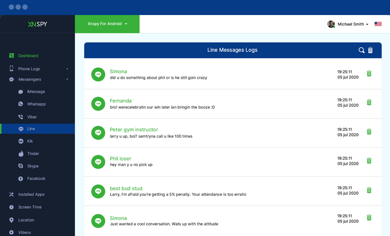 Bu mesajlaşma uygulaması aracılığıyla tüm gelen ve giden aramaları, görüntülü aramaları ve mesajları izleyin. Arama kayıtlarını görebilir ve Line Messenger'da kullanılan izleme listesindeki kelimelere karşı uyarılar alabilirsiniz.