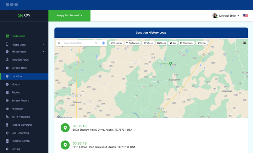 İzlenen kullanıcının ziyaret ettiği tüm yerleri görüntüleyebilirsiniz. Haritadaki işaretçiler, hedef cihaz sahibi tarafından ziyaret edilen yerleri gösterir. Bir işaretçiye tıklamak, bu yerlerin adreslerini gösterecektir. Ayrıca her ziyaretin tarih ve saat süresini de izleyebilirsiniz.