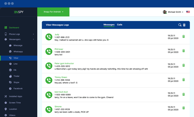 Viber Günlüklerini buradan kontrol edebilirsiniz. Sırasıyla Viber Çağrı günlüklerini ve sohbet günlüklerini izlemek için Çağrılar ve Mesajlar sekmesine tıklayın. Ayrıca her arama ve mesaj için saat ve tarih damgalarını da izleyebilirsiniz.