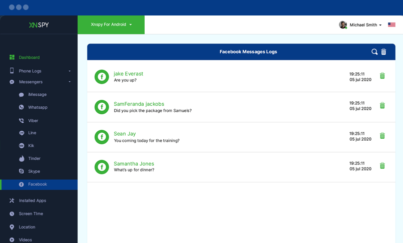Facebook Messenger uygulaması üzerinden gönderilen tüm gelen ve giden mesajları izleyebilirsiniz.